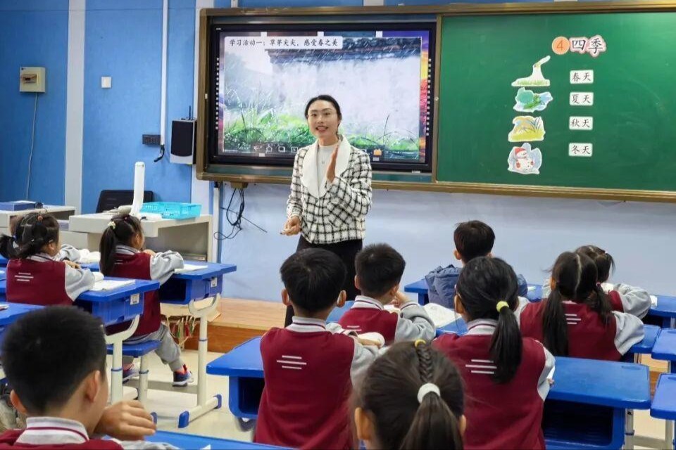 教师鲁雪执教的《四季》一课,聚焦 “巩固识字、深化朗读、创意表达” 核心目标,以新课标 “学习任务群” 理念为引领,通过 “配乐表演读” 等趣味活动帮助学生扎实理解课文内容。在核心环节 “四季创意坊” 中,学生紧扣 “XXXX 说季节” 句式,结合生活观察创编出 “柳叶飘飘说春天”“雪花片片说冬天” 等鲜活表达,充分展现语言运用能力;教师通过多元评价与精准引导,让学生在深度学习中感受文本韵律美,进一步激发了对大自然的探索热情,为低年级语文课时教学提供了高效实践范例。
